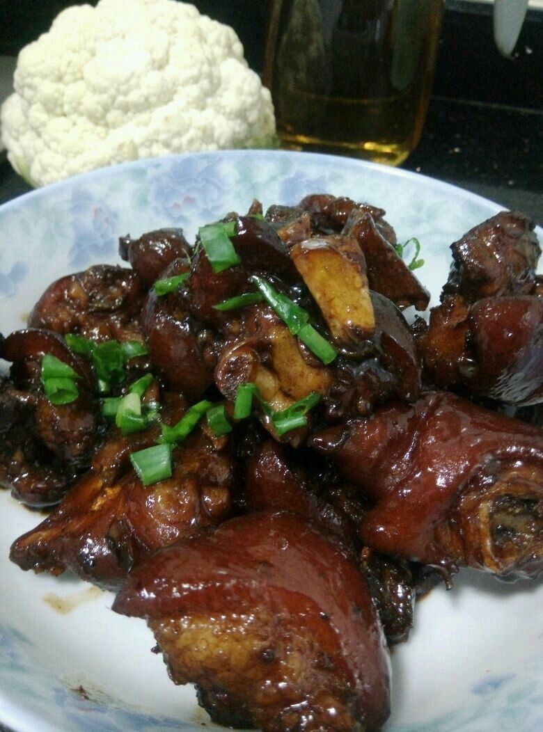 5:另起锅,放油烧热,下入腐乳和其他大料,爆香,这一步,手没停,在翻锅,没拍,大家自己想像。然后也倒进电压力锅里,淋在猪手上。调好时间,蹄筋档。