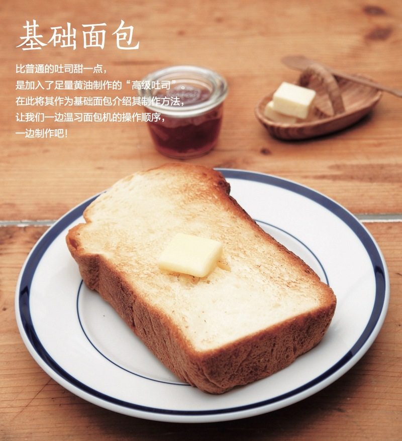 高筋粉250g;酵母粉3g;水130g;砂糖35g;黄油35g;鸡蛋25g;