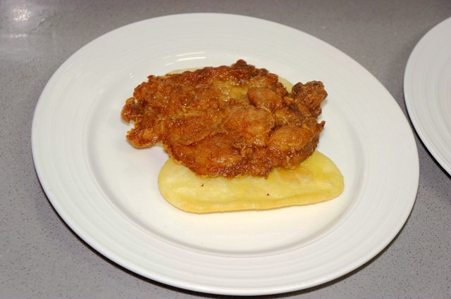 10:将腌制过的大排两面扑上少量面粉后放入油锅里炸