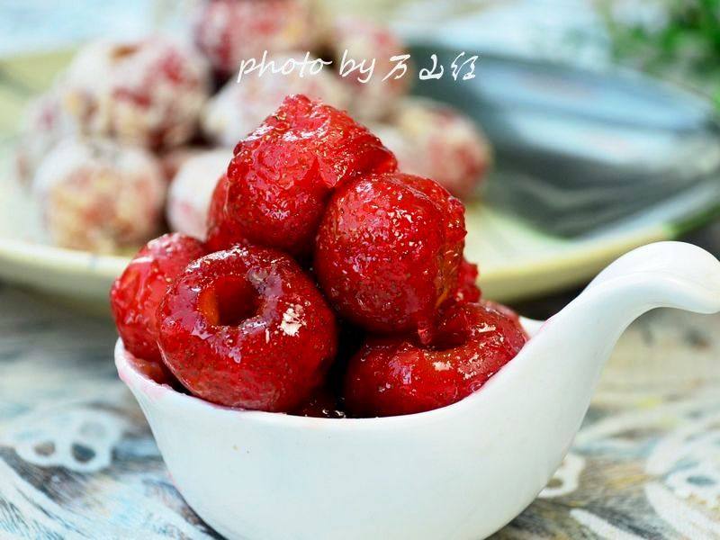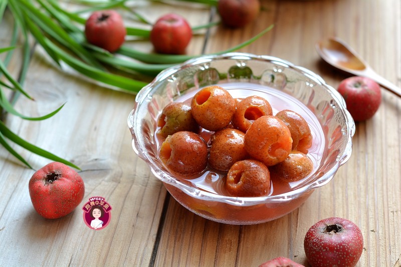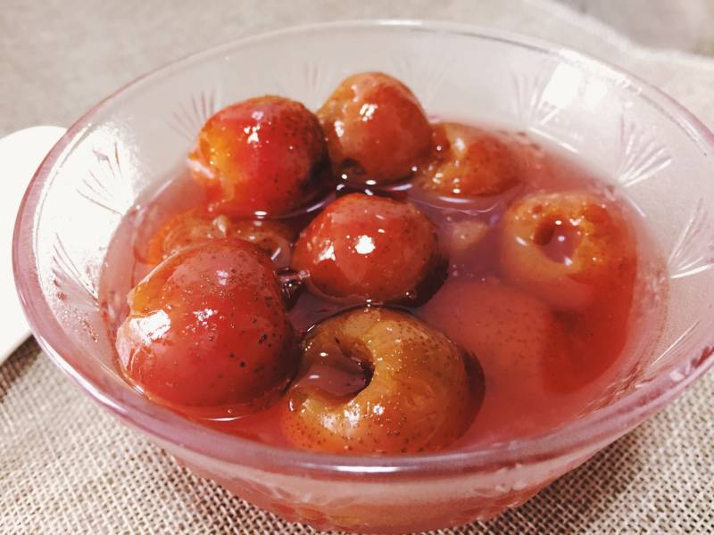8:冰糖全部融化后,关火,自然晾凉即可,用勺子一两个轻轻捞起,防止娇嫩的空心红果被碰破。