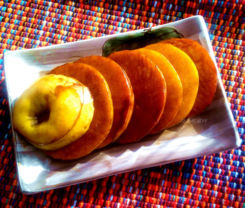6:一面煮2分钟后再反面煮2分钟即可。苹果片依次煮完。(以免浪费糖水就做的少,是一个苹果的量,放太多苹果片会一下煮不完。)