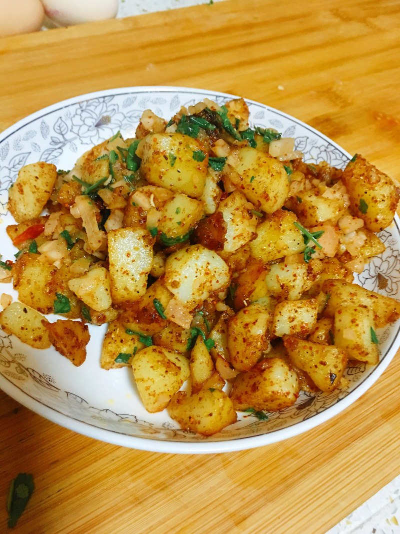 5:翻炒均匀好吃的锅巴土豆可以了。