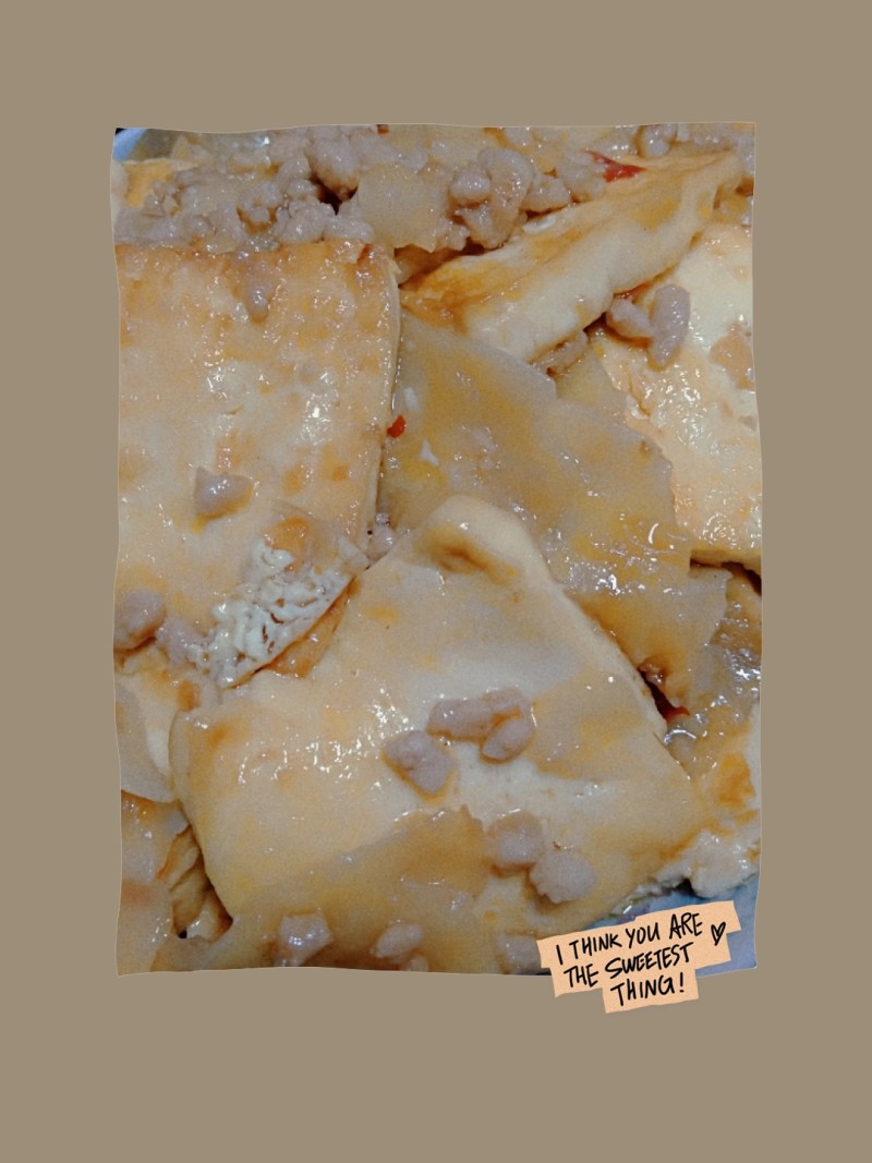煎豆腐的时候油不能多,稍微定型后再翻面。
