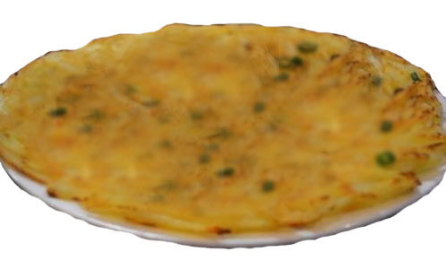 2:平底锅加入油,土豆泥摊平在锅底,小火烤香脆。