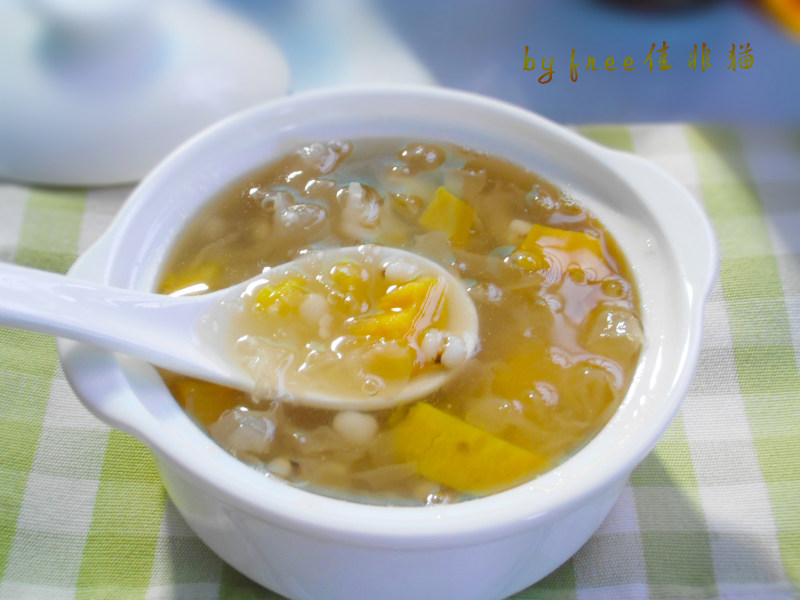 6:薏米和银耳煮熟煮软后放入红薯同煮约半小时至红薯熟烂。