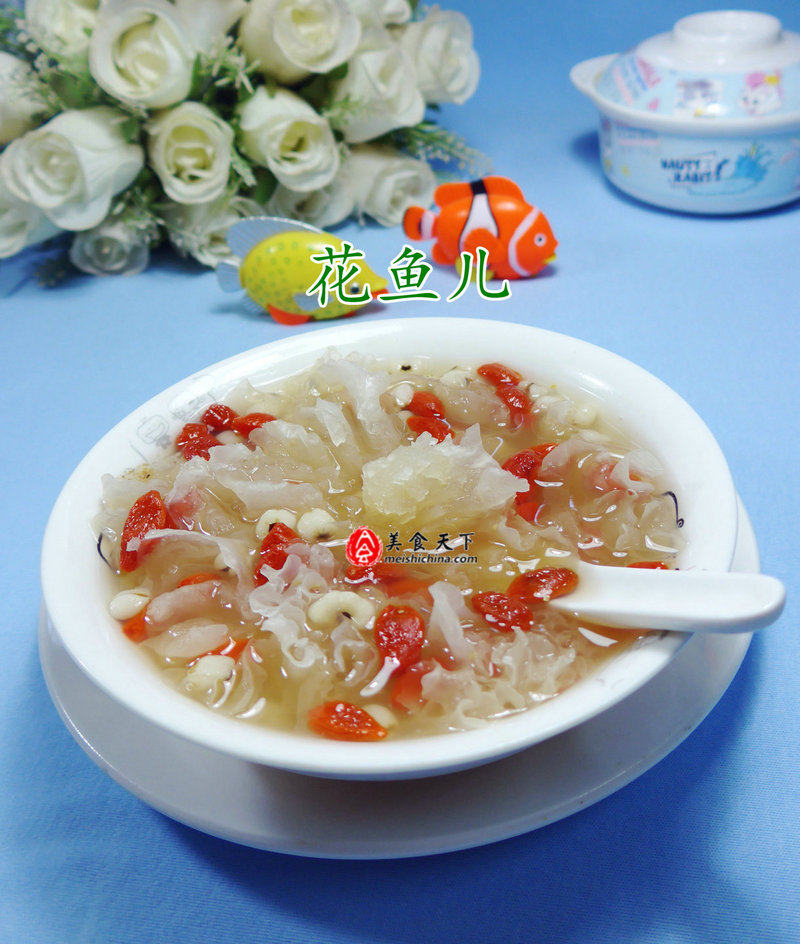 2:银耳事先用冷水泡开,去掉黄蒂,撕成碎朵