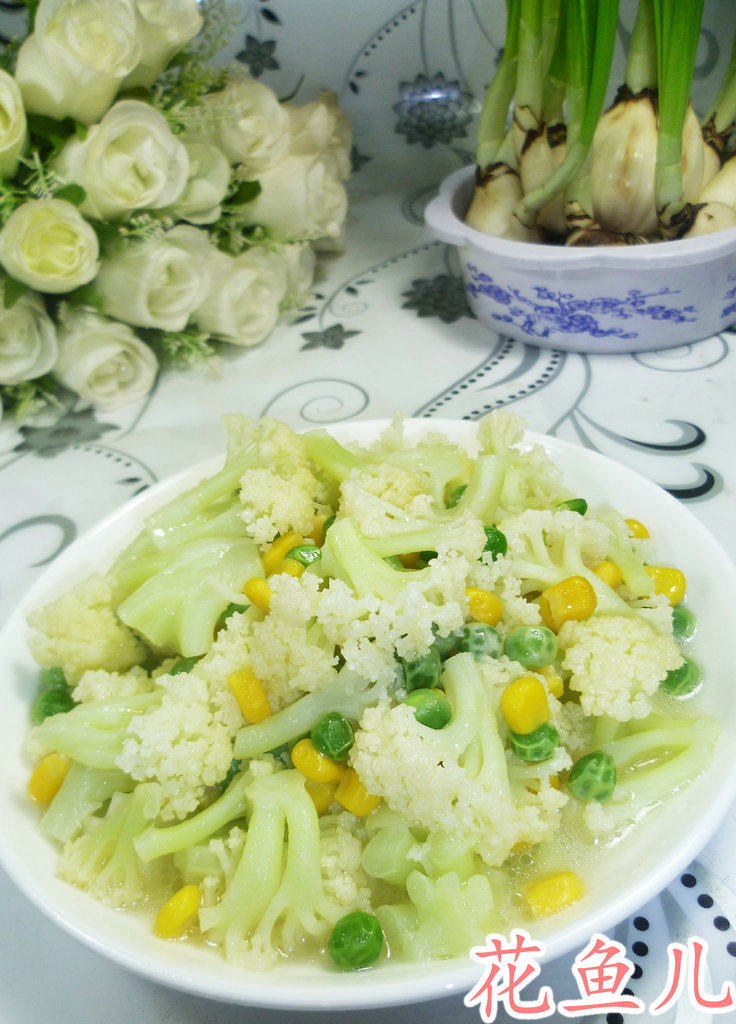 6:然后,合入玉米粒和青豆翻动一下、煮开,煮上1——2分钟。