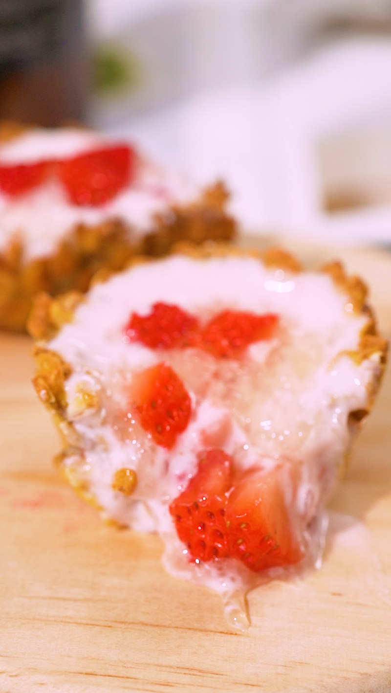 7:烤好的燕麦皮里加上草莓酸奶和燕窝。