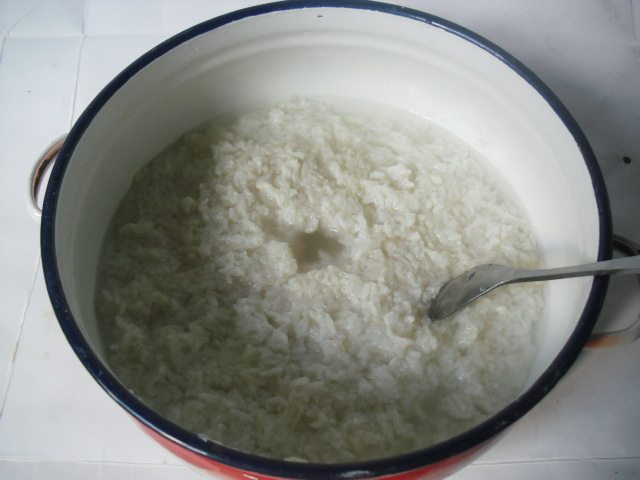 9:根据米饭的软硬度加入适量的凉开水,但不能加水后变成厚稀饭;