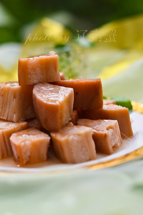2:莲藕要用形状好,眼儿大的,去皮,交一头切掉。