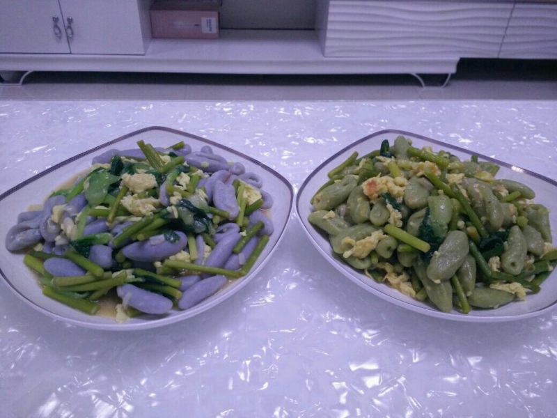 12:将煮好的猫耳朵放人锅了一起翻炒,炒匀加盐,鸡精调味!
