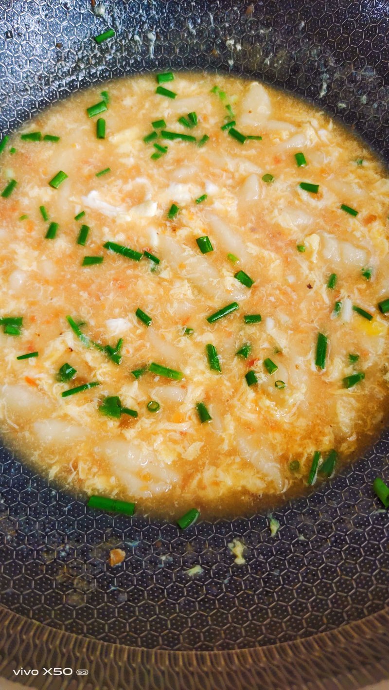 9:炒菜的时候同时煮杂合面鱼儿,全部浮出水面后捞出。