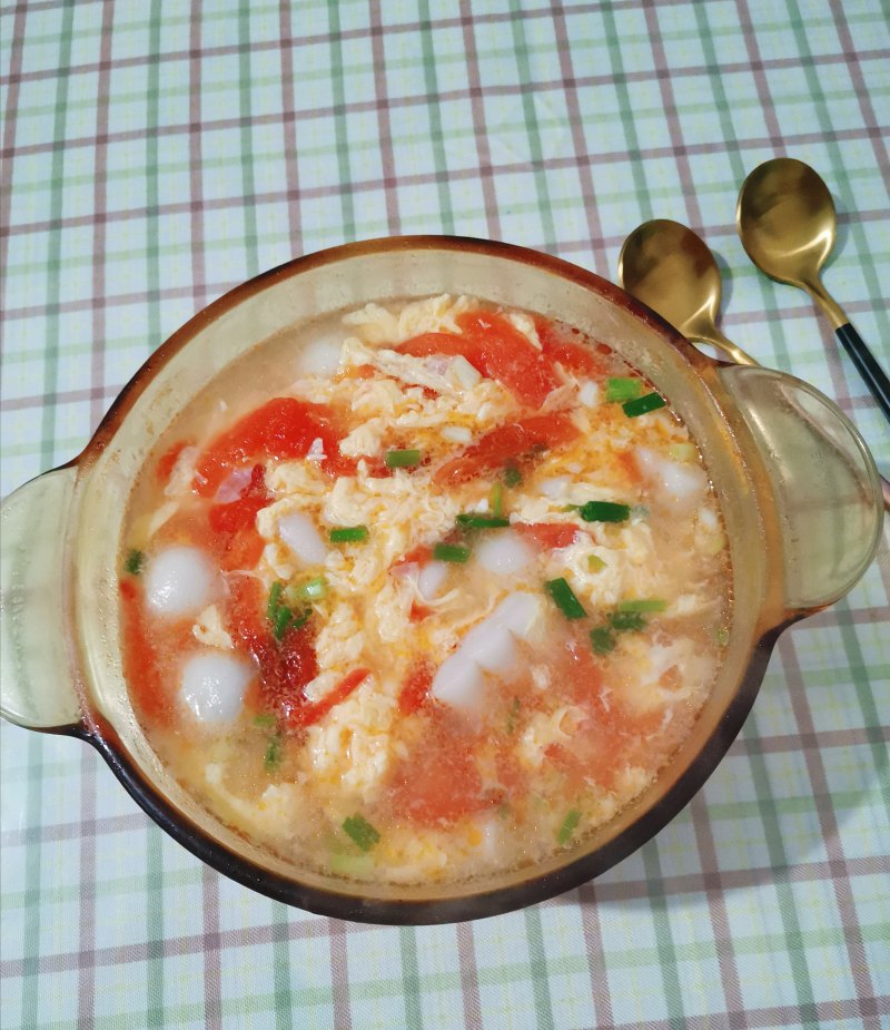 6:温暖鲜美的年糕汤,番茄口味总是让人喜欢。
