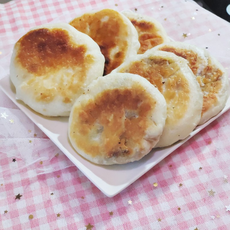 3:将包好的饼放入平底锅或者电饼铛,先小火定型,两面定型后,开中小火,让饼上色,烙到两面金黄就可以出锅