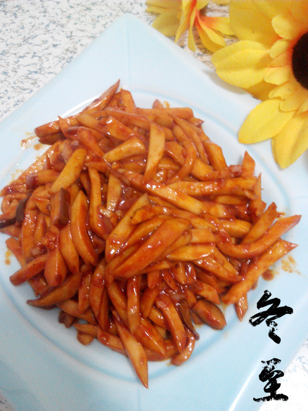这个菜不需要其它调料,就用这三种酱,成菜口味儿很棒。大人小孩子都喜欢。