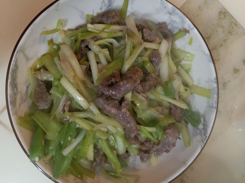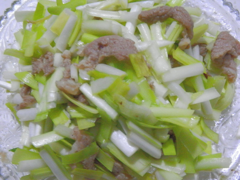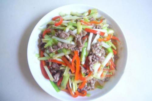 这道菜的关键是切肉时要注意肉的纹路,不能顺着切。拌的时候放上一点的碱。炒的时候要快速,这样就能保证牛肉鲜嫩、可口。