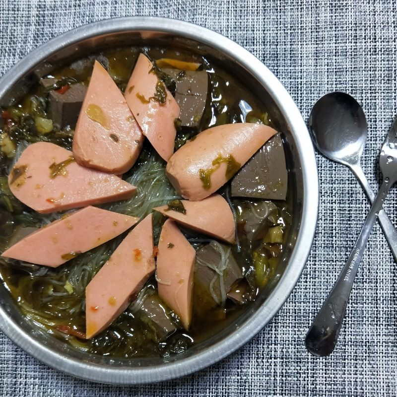 羊肉350克;酸菜1颗;延寿粉丝1把;