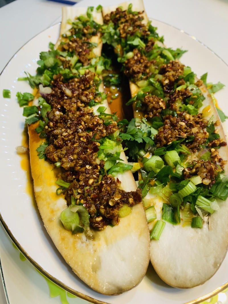 1:茄子抹少许油上锅蒸。
