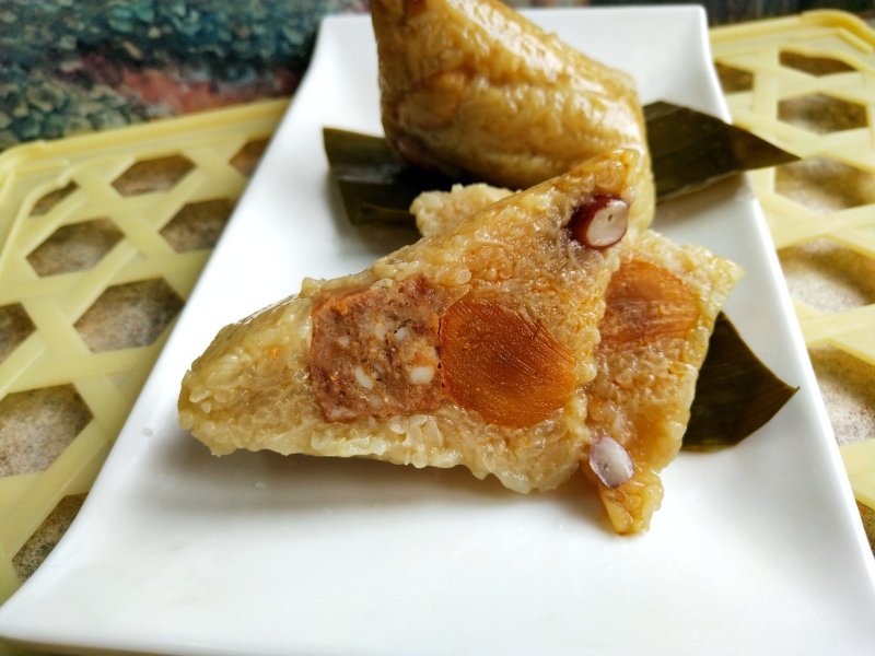 12:煮好的粽子,加了牛肉,烤肠和咸蛋黄,很好吃的哦。