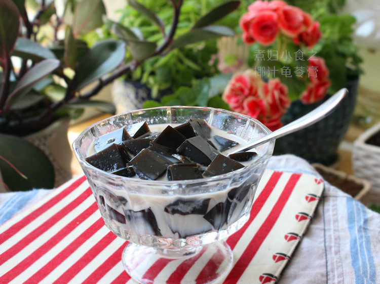 12:其味道甘甜微苦,喜欢的人会很喜欢,不接受的人可能爱不上。但龟苓膏绝对是好东西,美容养颜,清肠通便。超市买成品不便宜,咱自己做太经济实惠了,而且做法简单,吃法多变。心动不如行动,您也试试吧。