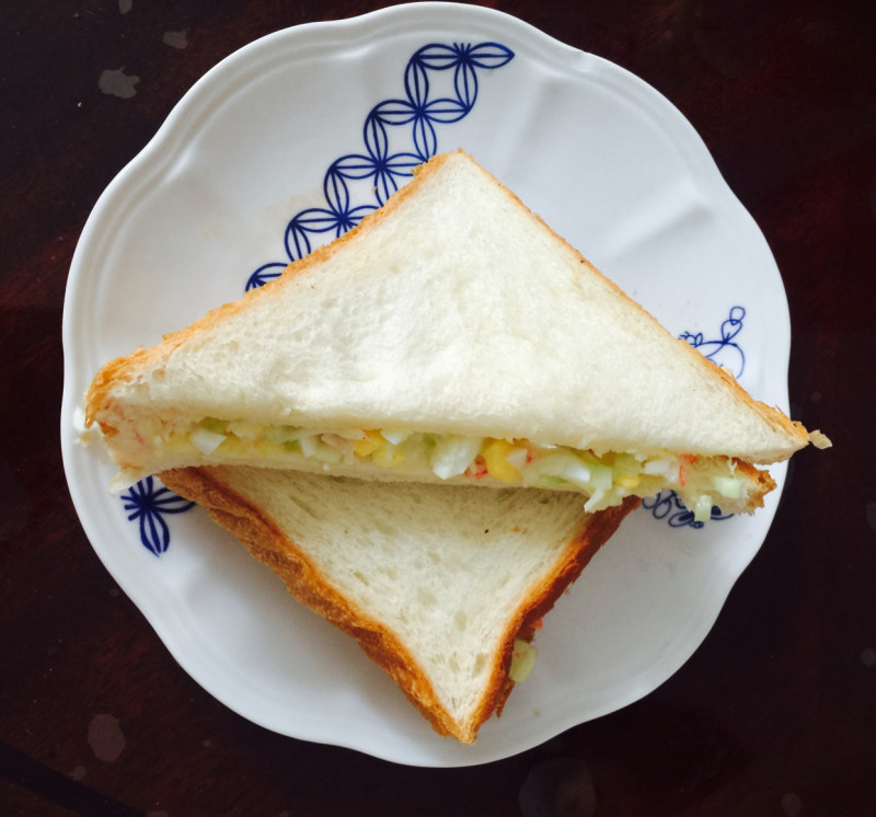 8:蟹肉煎蛋三明治就制作完成了。