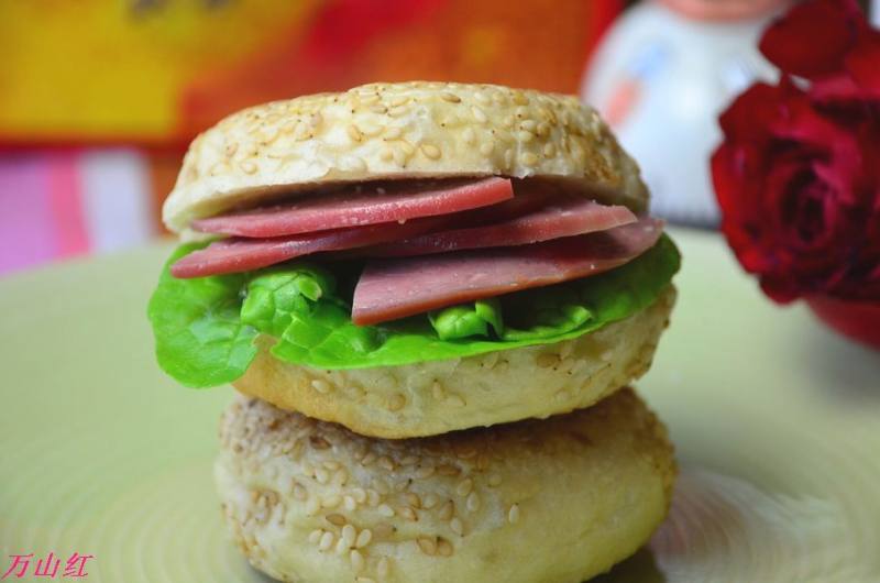 10:把自己喜欢是什么火腿呀、鸡蛋之类的食材夹进去,享用吧