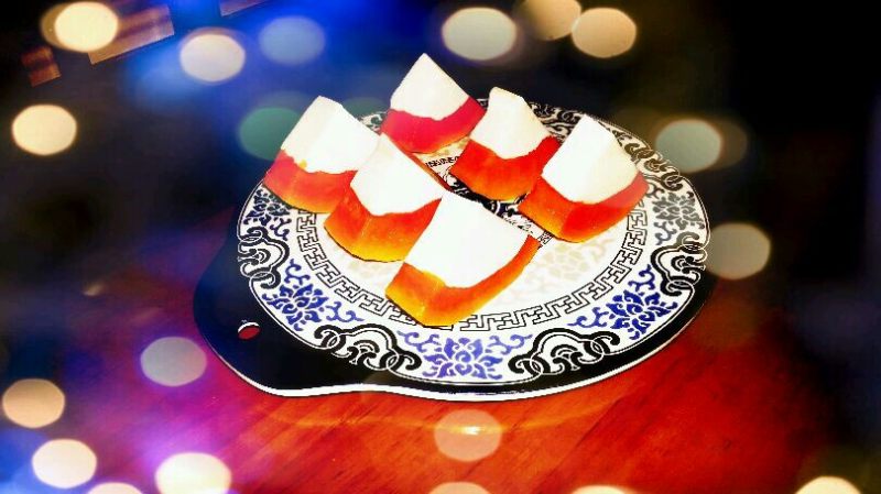 4:牛奶和椰浆完全凝固后,取出切成小块即可。