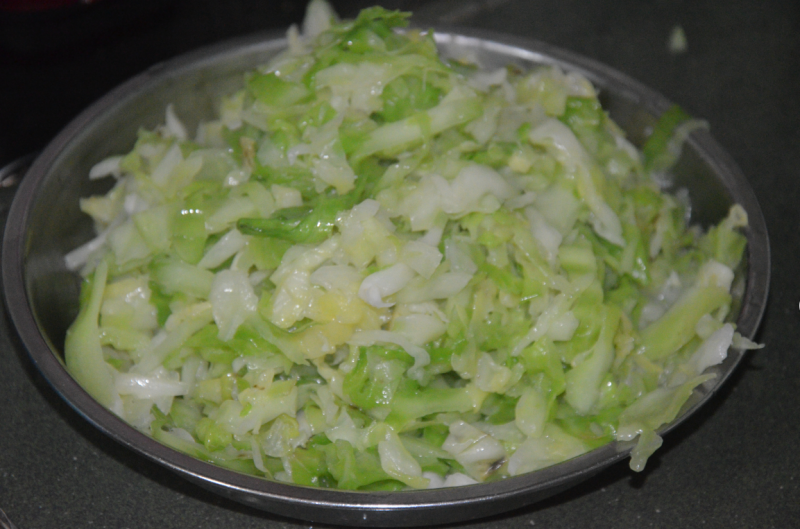 3:倒油爆炒甘蓝等甘蓝变软之后加入混合的米饭和鸡蛋翻炒