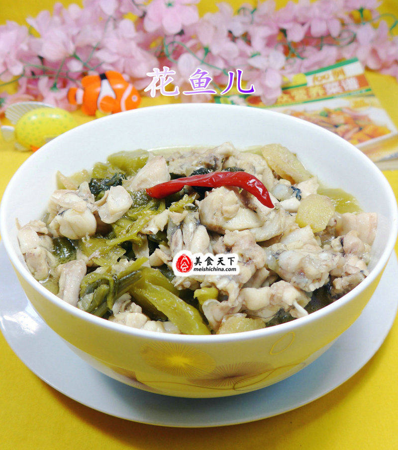 1:食材:酸菜、牛蛙(已洗净剁开)、姜片