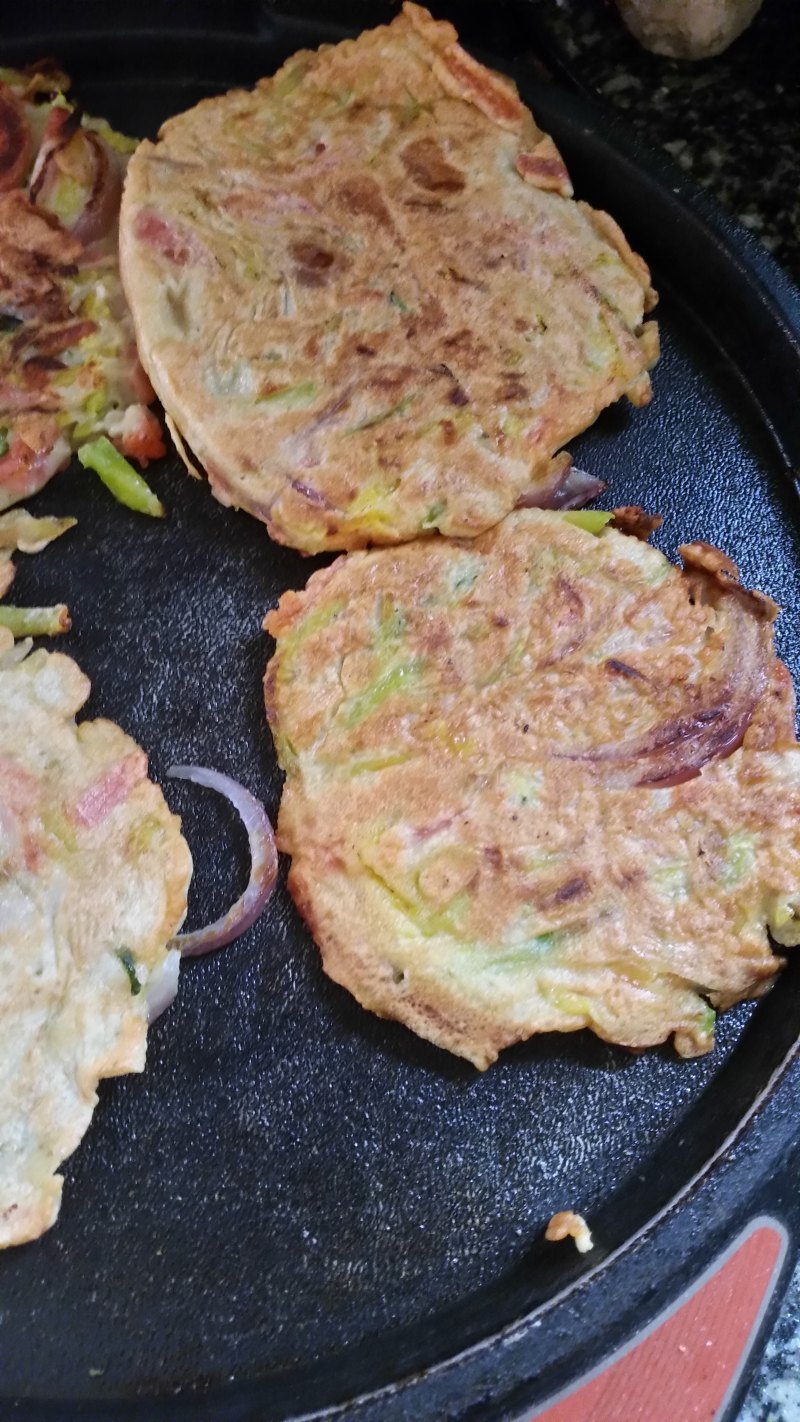 12:翻面,同样煎至呈金黄色,中间鼓起即可关火。
