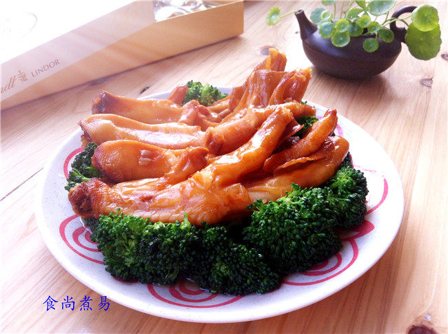 12:夹起鹅掌摆在西兰花上面,淋入剩余的汤汁即可