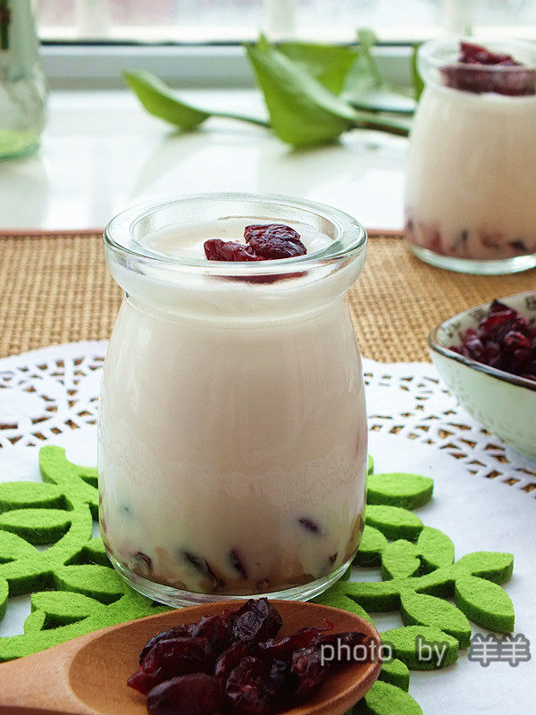 蔓越莓干30克;原味酸奶500克;