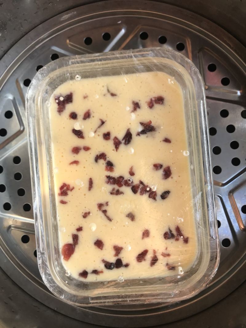 9:盖上保鲜膜,搓几个小洞洞,大火蒸20分钟。