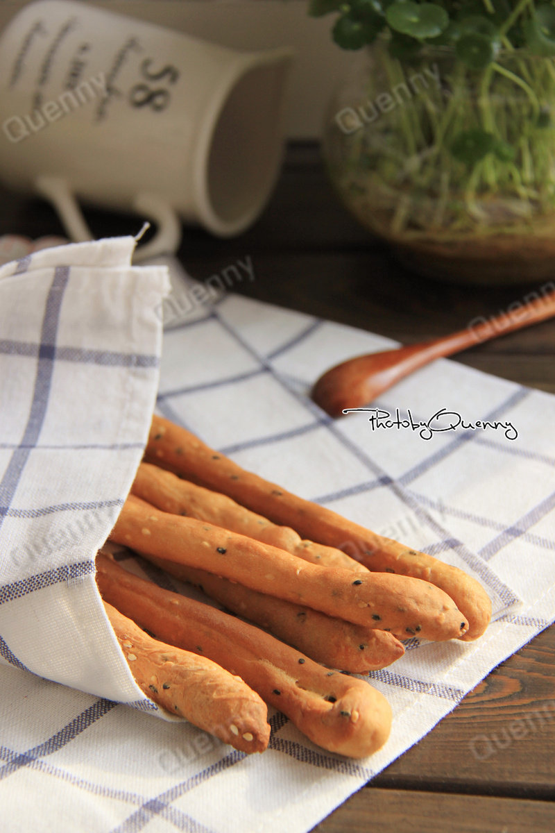 1.不需要二次发酵,在将初次发酵好的面团排气整形后,就可以直接烘烤了;2.烘烤时间要根据实际情况做调整,如果烤好发现不够硬脆就继续再烤几分钟就可以了;3.面包棒保存不需要密封,直接装纸袋里就行了;