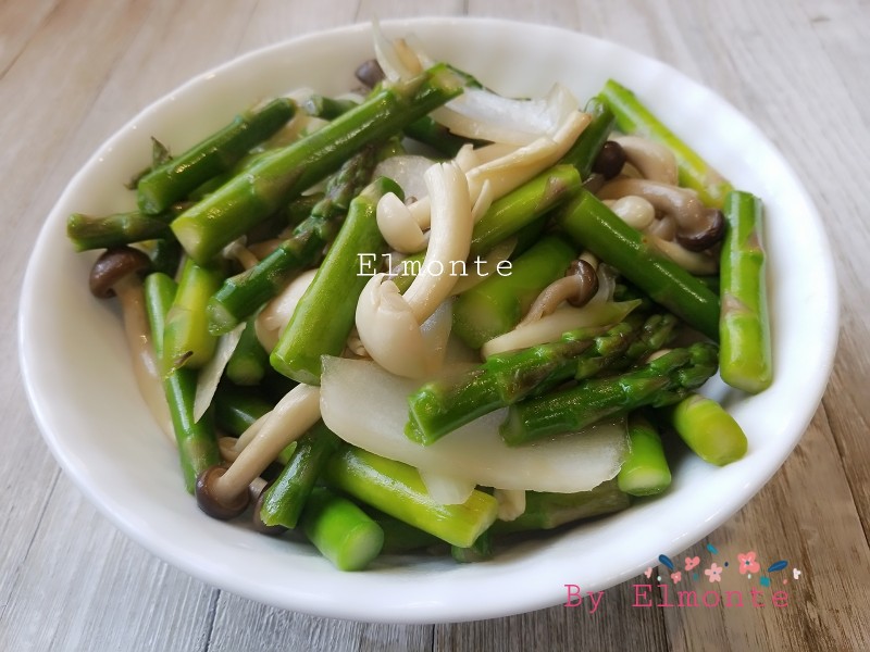 芦笋1把;白玉菇1包;蟹味菇1包;洋葱半个;