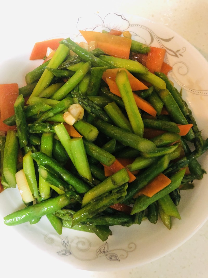 杏鲍茹1个;芦笋200克;胡萝卜半根;