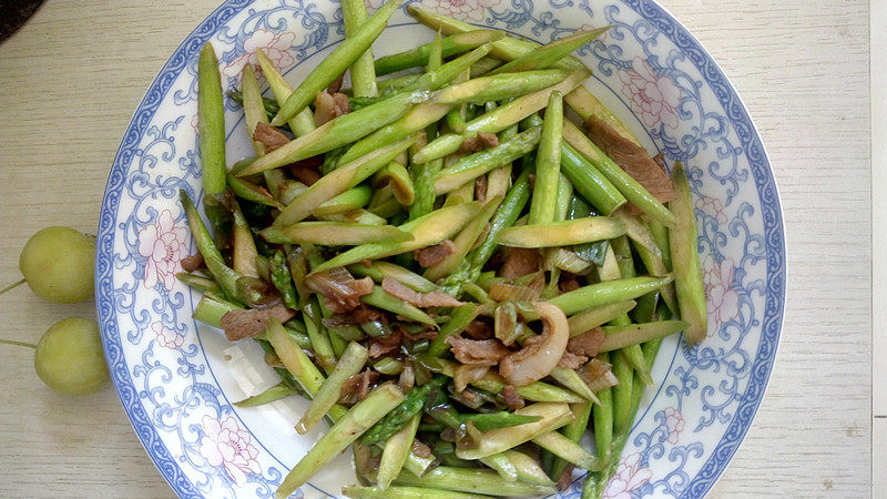 芦笋1把;油半勺;花椒面1g;酱油半勺;