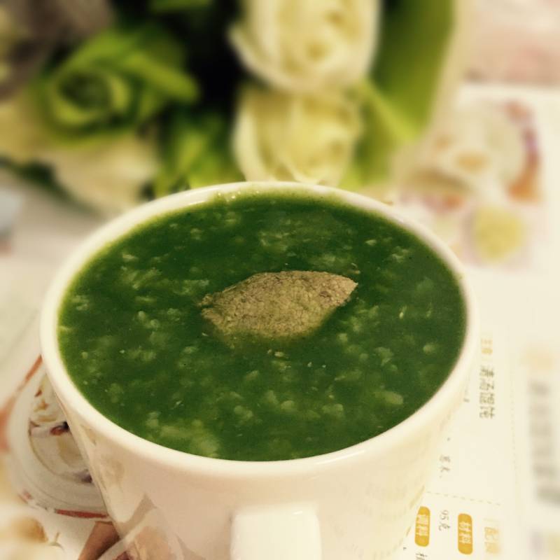 猪肝100克;猪肉50克;大米200克;枸杞菜叶20克;芹菜叶子适量;