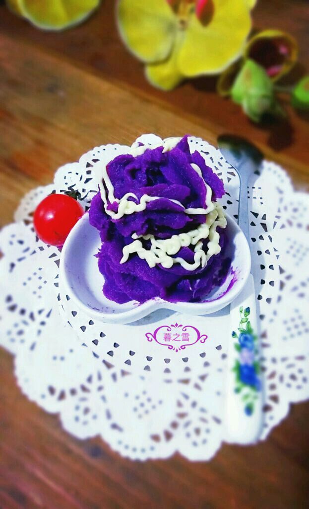 20:用紫薯泥挤出深紫色的花。