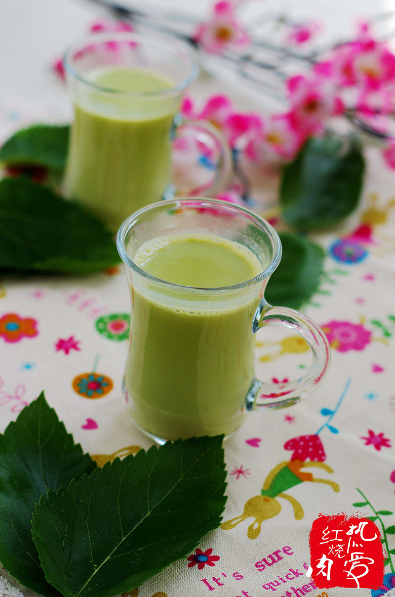 桑叶撕碎去掉粗茎,打出来的豆浆没有大片,口感较好。饮用时可以根据自己的口味加糖或蜂蜜调味饮用