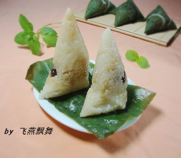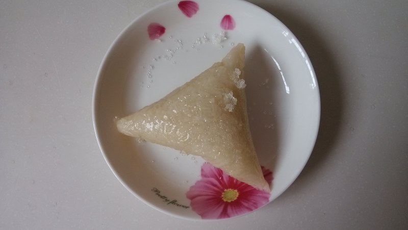 21:剥开一个粽子,通体晶莹剔透,枣香浓郁,因为包粽子之前糯米拌过白糖,所以这个粽子不蘸白糖直接吃就有丝丝甜味了。