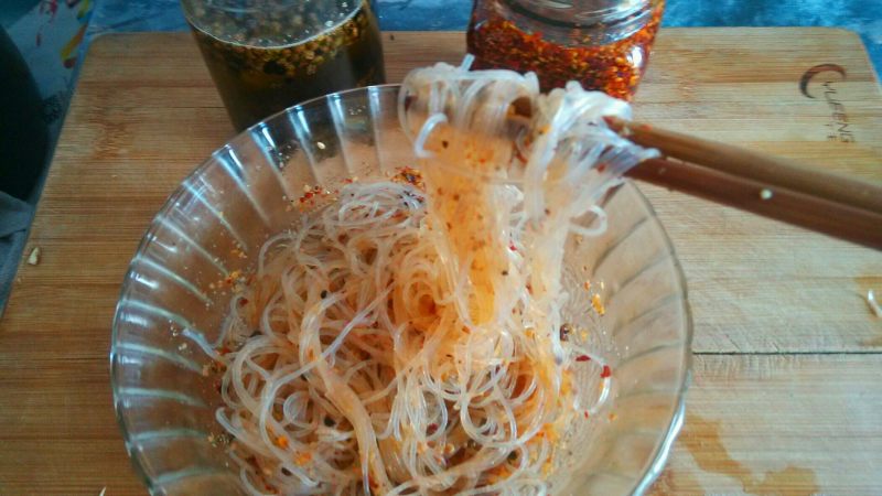 3:粉丝放热水里煮一两分钟捞出过凉水