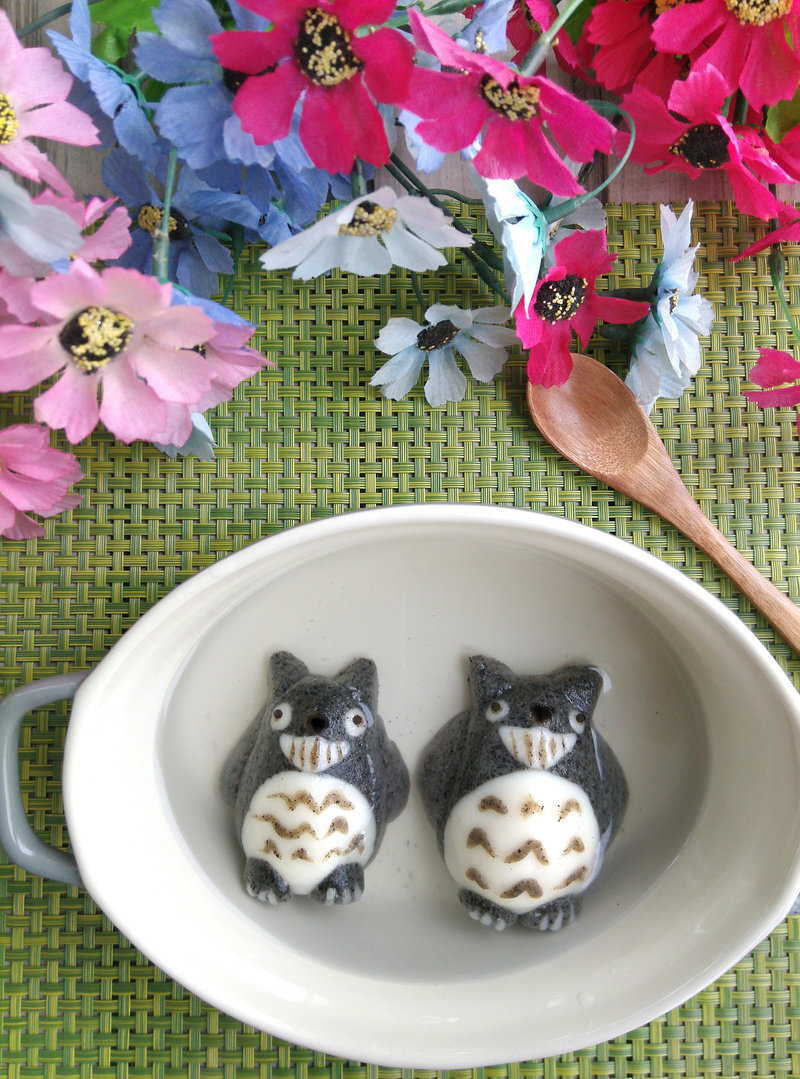 1、龙猫身体的灰色部分,煮熟后颜色偏深了。黑芝麻粉可以适量少放些;2、面团很容易成型,所以我就没加猪油。