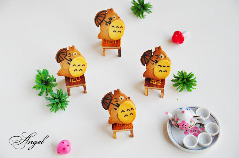 12:烤好的饼干用色素笔画上雨伞的线条和龙猫的表情。