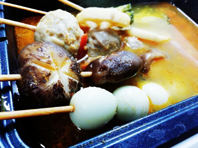 鲜虾1串;面筋2串;豆腐2串;蟹肉棒2串;虾肉棒1串;甜不辣2串;撒尿牛丸1串;香菇2串;松花菜2串;油菜2串;红薯片2串;土豆片2串;