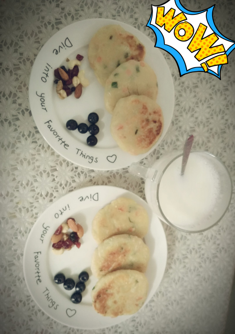 6:电饼铛加热放少许油,将所有原料摊成饼,摊匀。