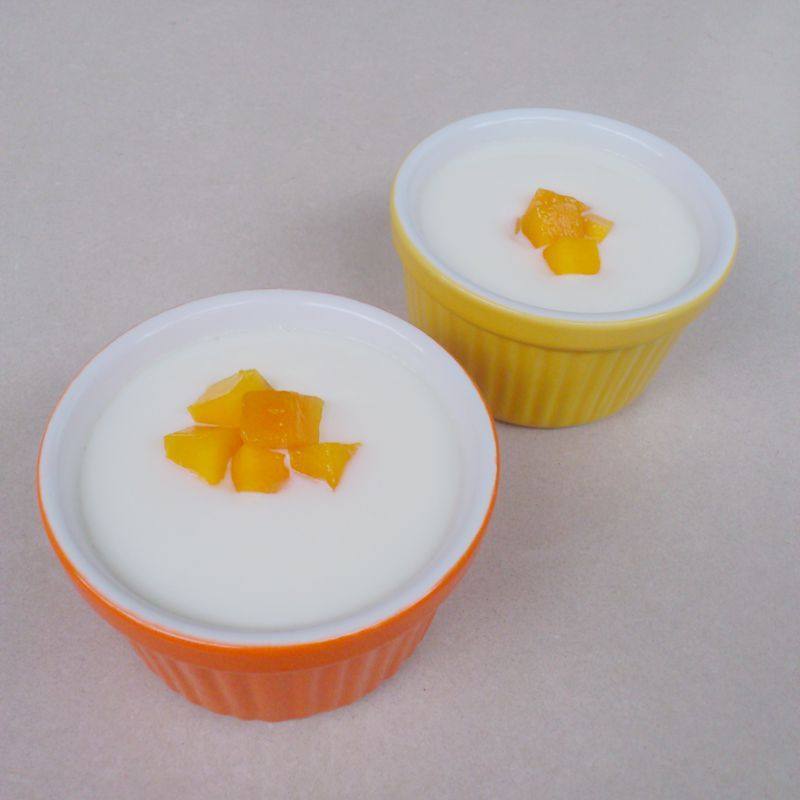9:端出放凉,在上面摆一些自己喜欢吃的水果即可。双皮奶入口即化、爽滑细嫩、奶香浓郁、甜而不腻。