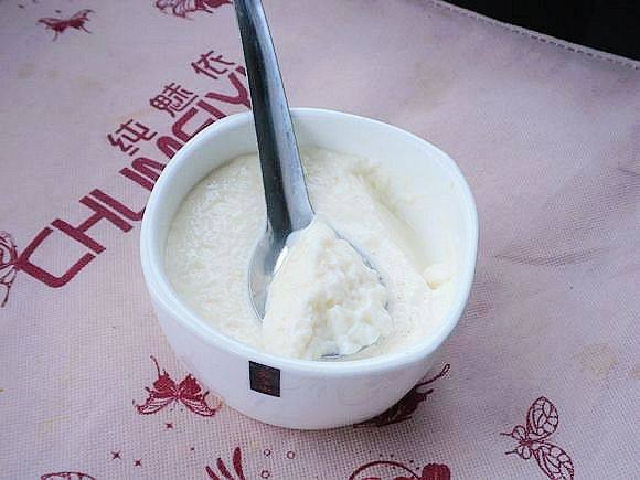 5:这时表面形成的奶皮留在小碗底。