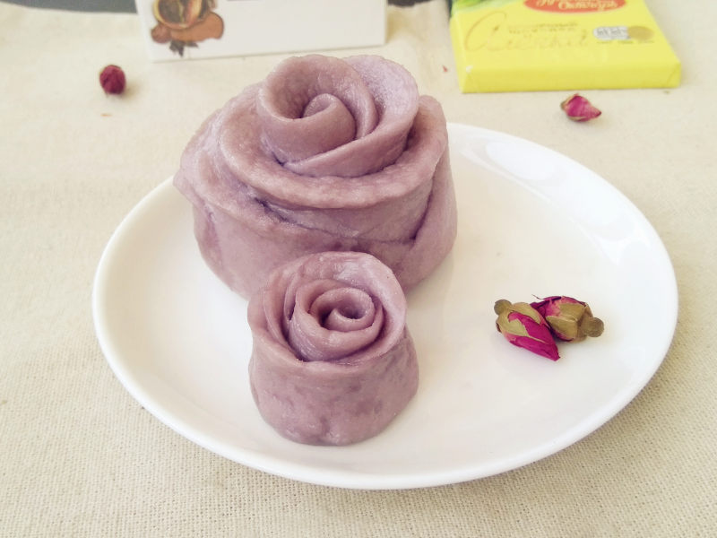 5:稍微用手弄一下,盛开的玫瑰就好了。上锅蒸前再发酵十分钟。
