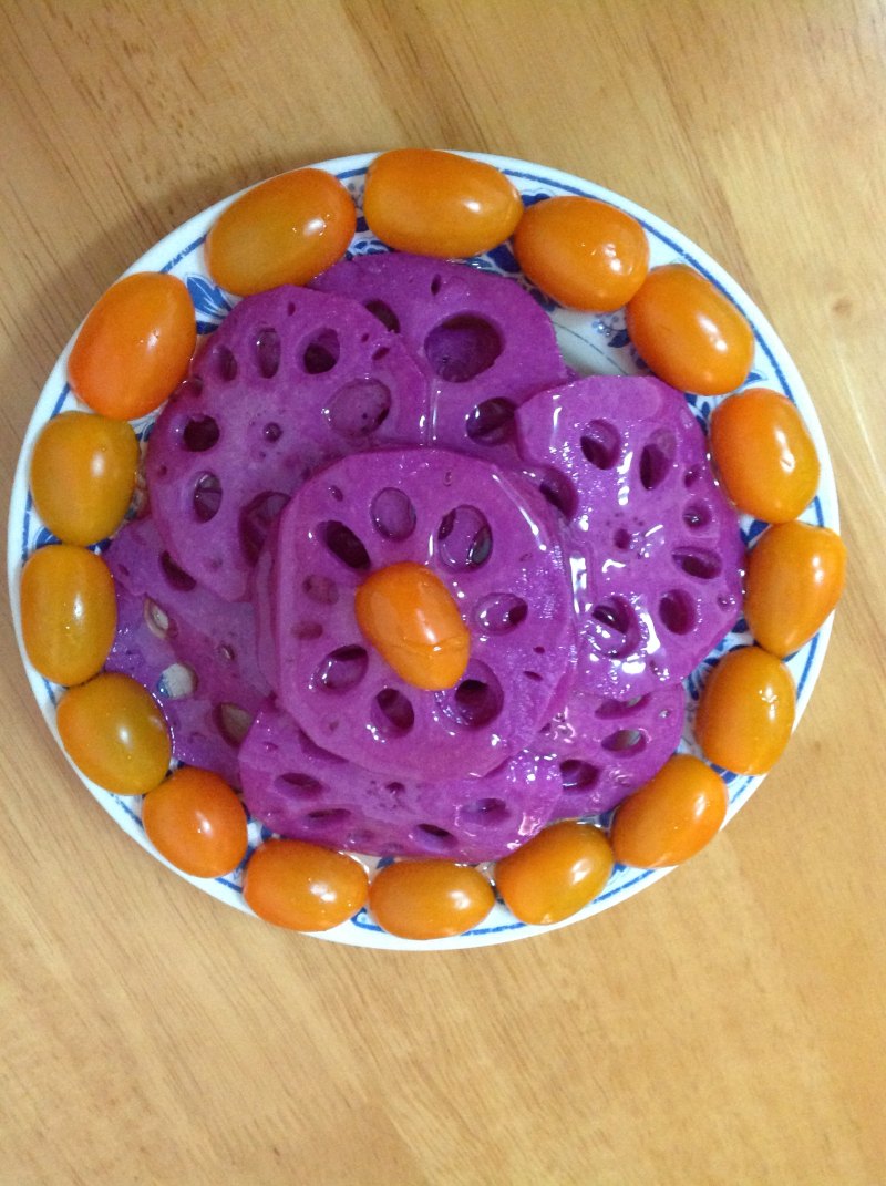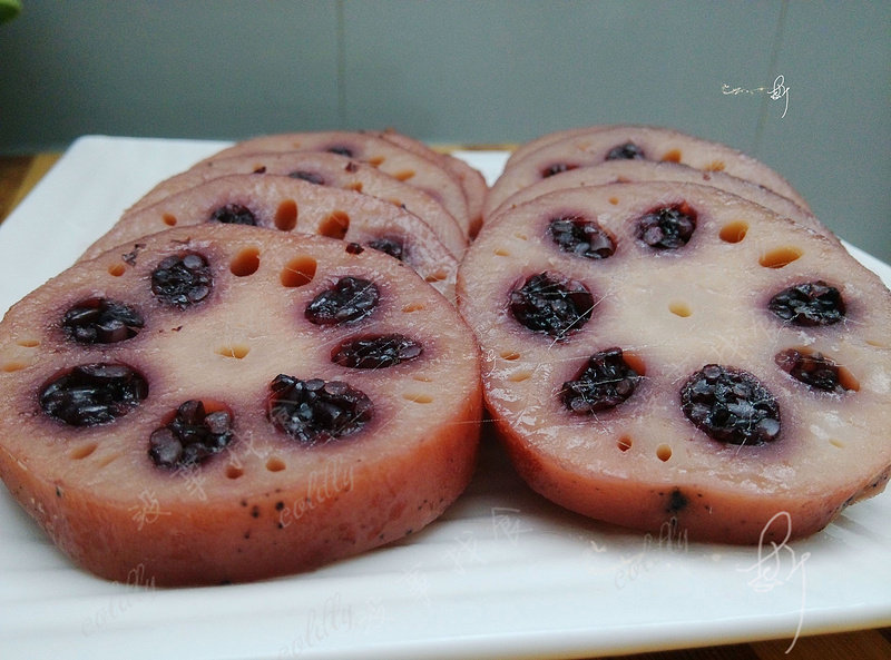 9:莲藕切片,淋上炖煮的玫瑰糖水,非常美味哦